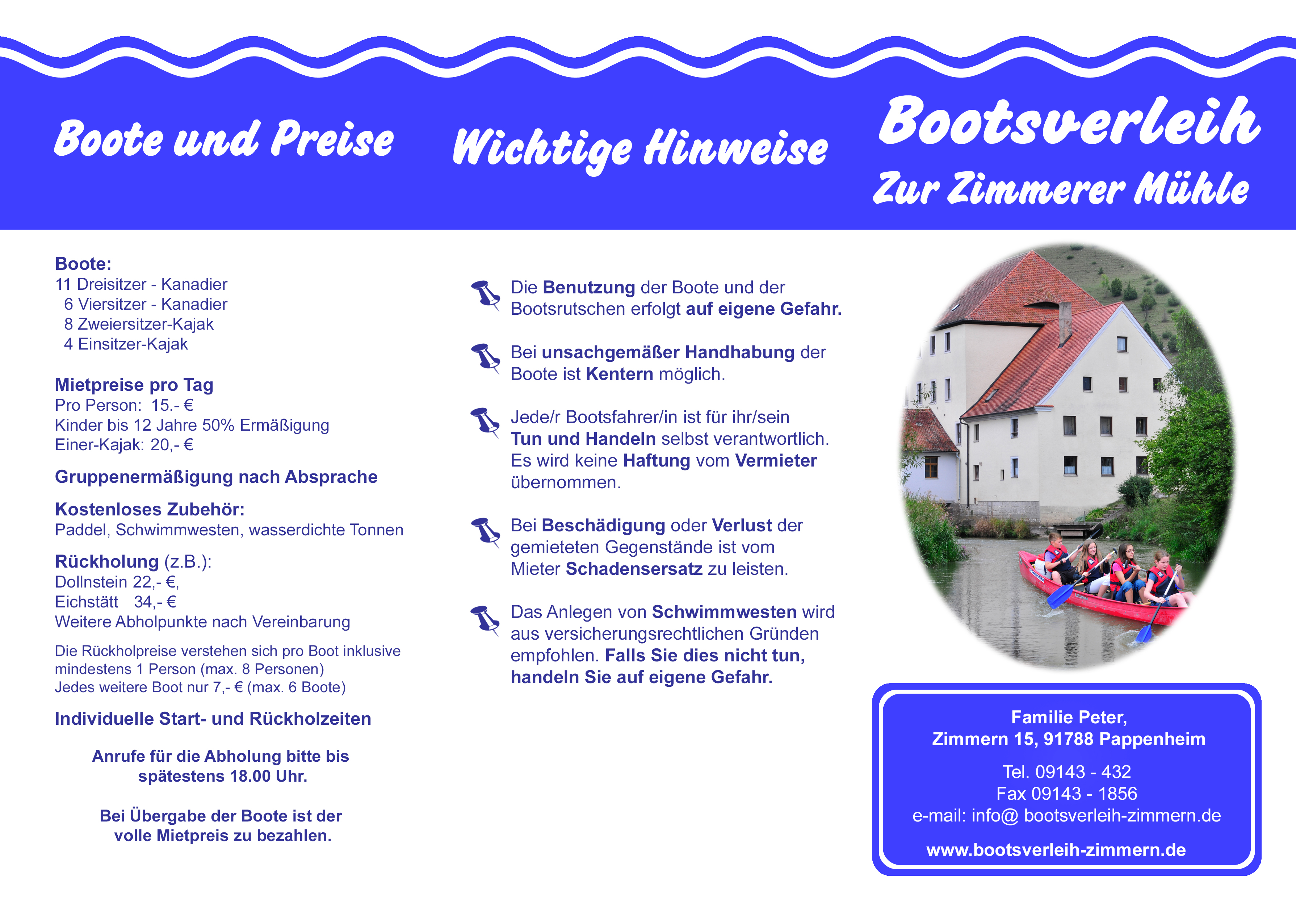Der Prospekt vom Bootsverleih Zur Zimmerer Mühle ist Ihr Begleiter durch den Naturpark Altmühltal